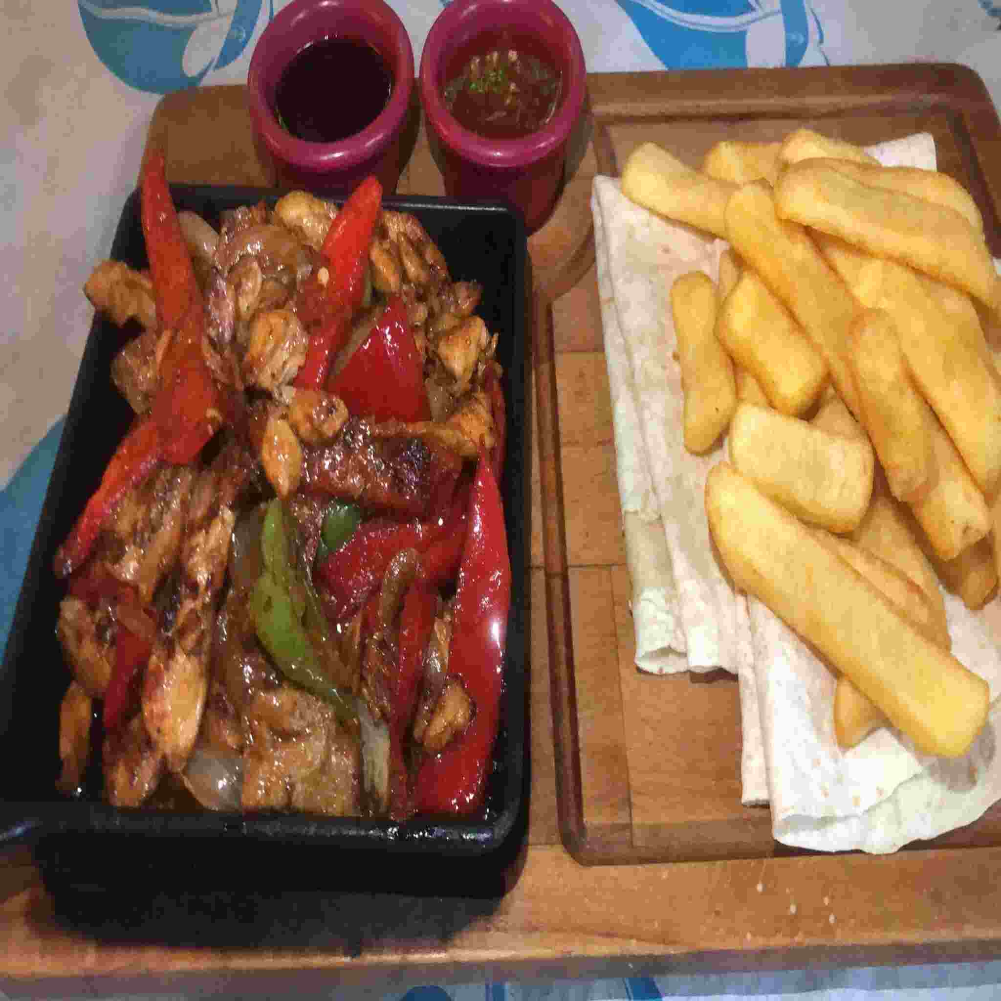Özel soslar ve çeşnilerle marine edilmiş tavuk eti. Krem sos ile sotelenmiş yeşil ve kırmızı biber. ... devamını oku!