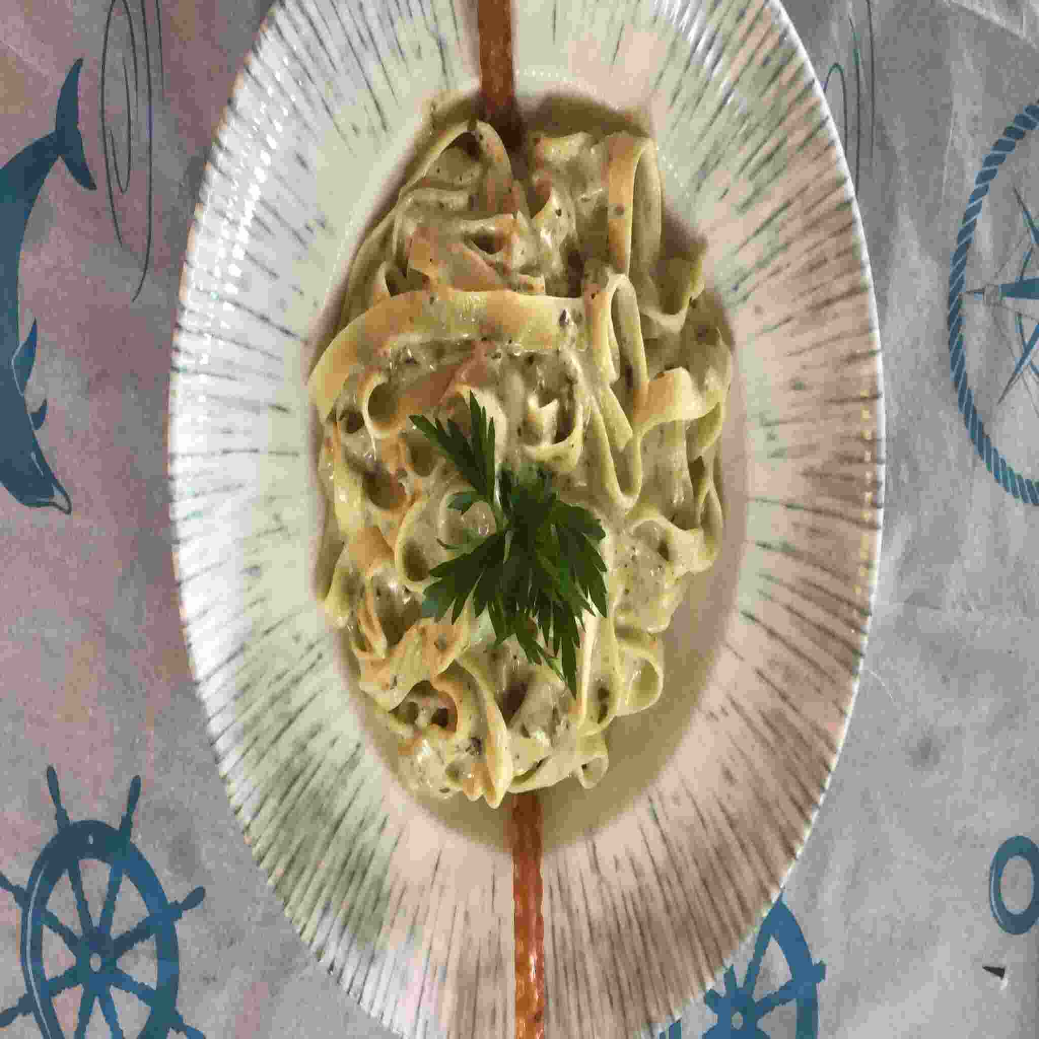 Özel soslar ile marine edilmiş ve krem sos ile sotelenmiş jülyen tavuk dilimleri, mantar, sarımsak, ... devamını oku!