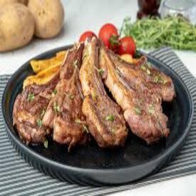 Özel sos ve yakamoz çeşnileri ile marine edilmiş pirzola. Garnitür ve kızarmış patates ile...