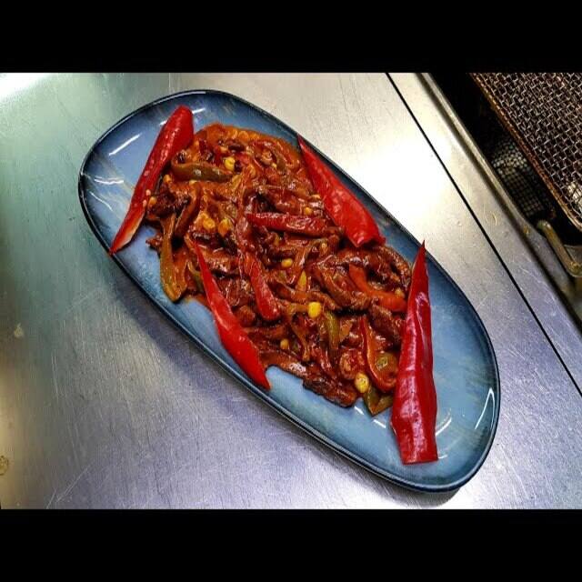 Özel soslar ile marine edilmiş jülyen tavuk dilimleri, soğan, sarımsak, Kırmızı ve yeşil biber, Acı ... devamını oku!