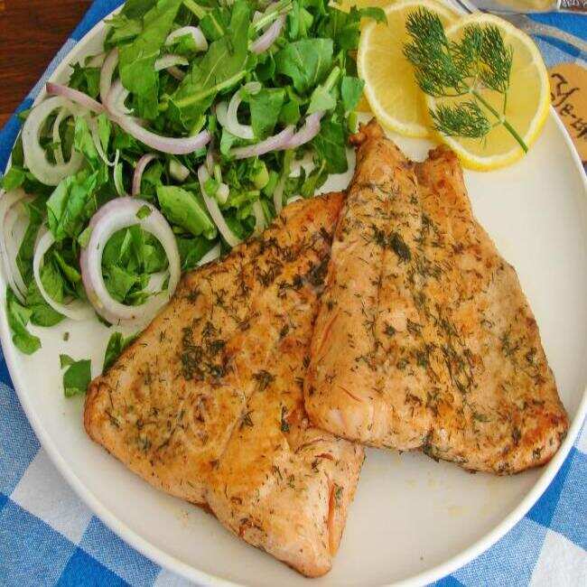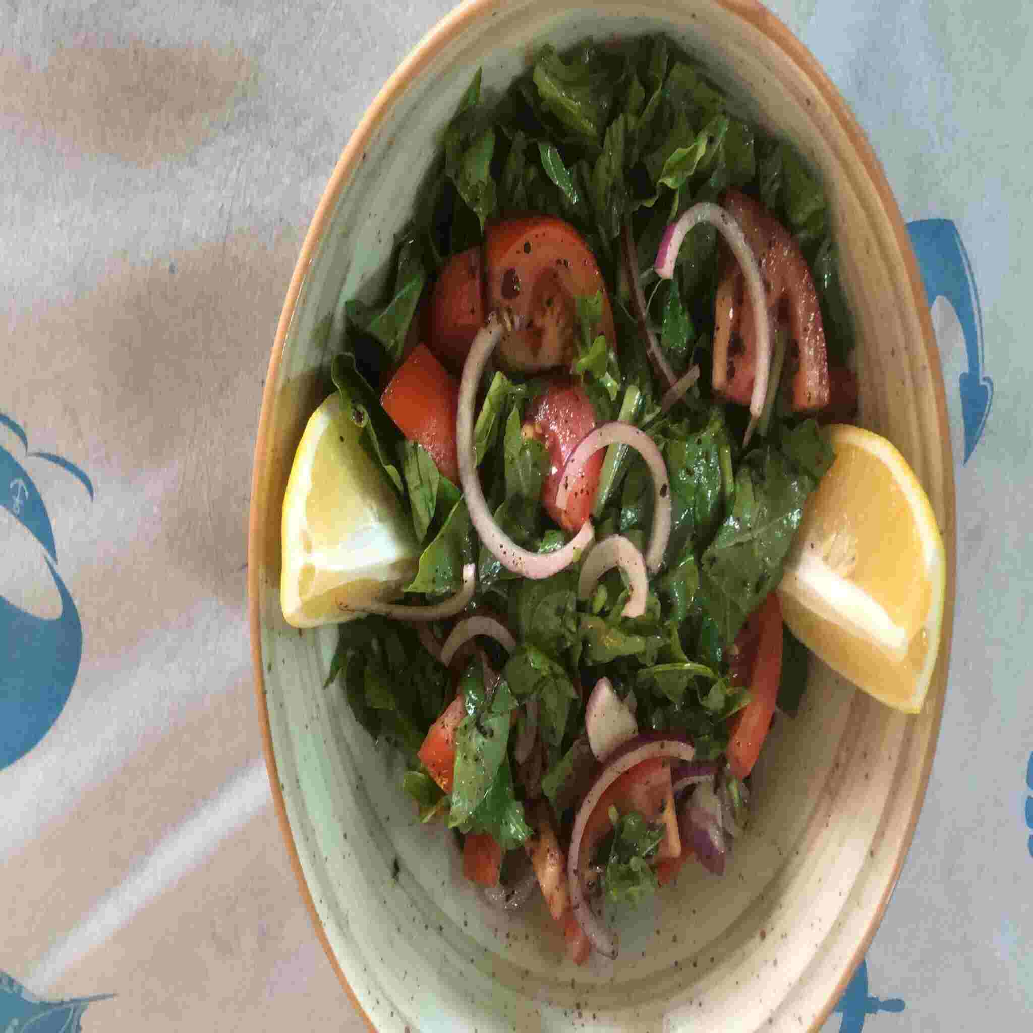 Mısır unu ile kaplanmış günlük deniz balığı, roka, taze sebze, kırmızı soğan ve limon ile...
