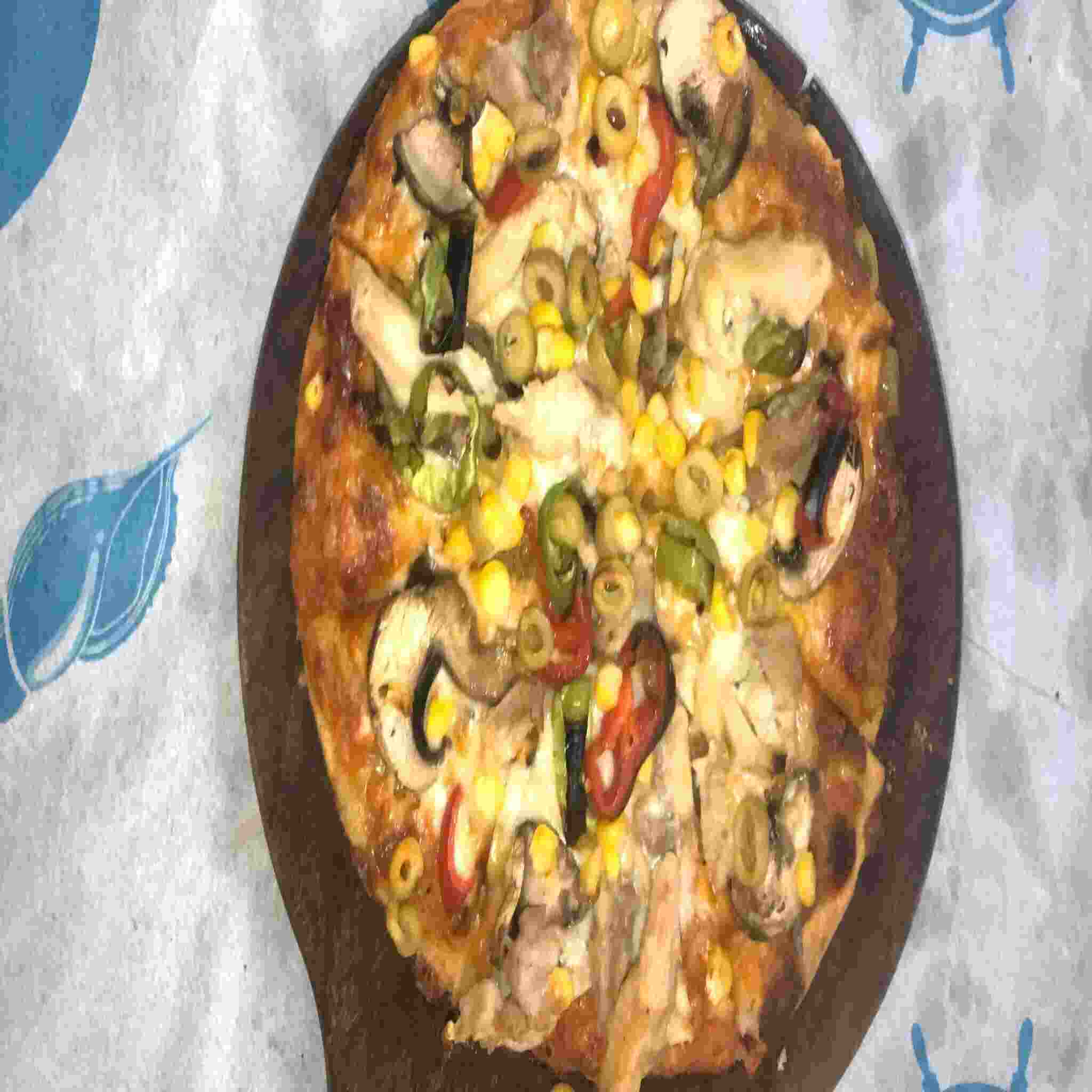 Pizza Sos, Mozzarella peyniri, Tavuk Göğsü parçaları, Mantar, Mısır, Siyah Zeytin ve acı sos ile... ... devamını oku!
